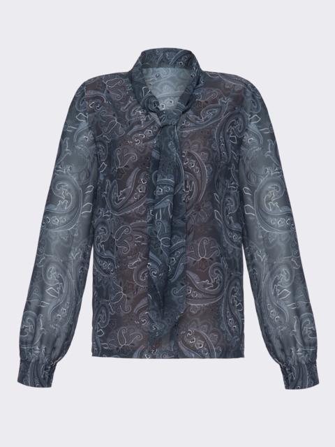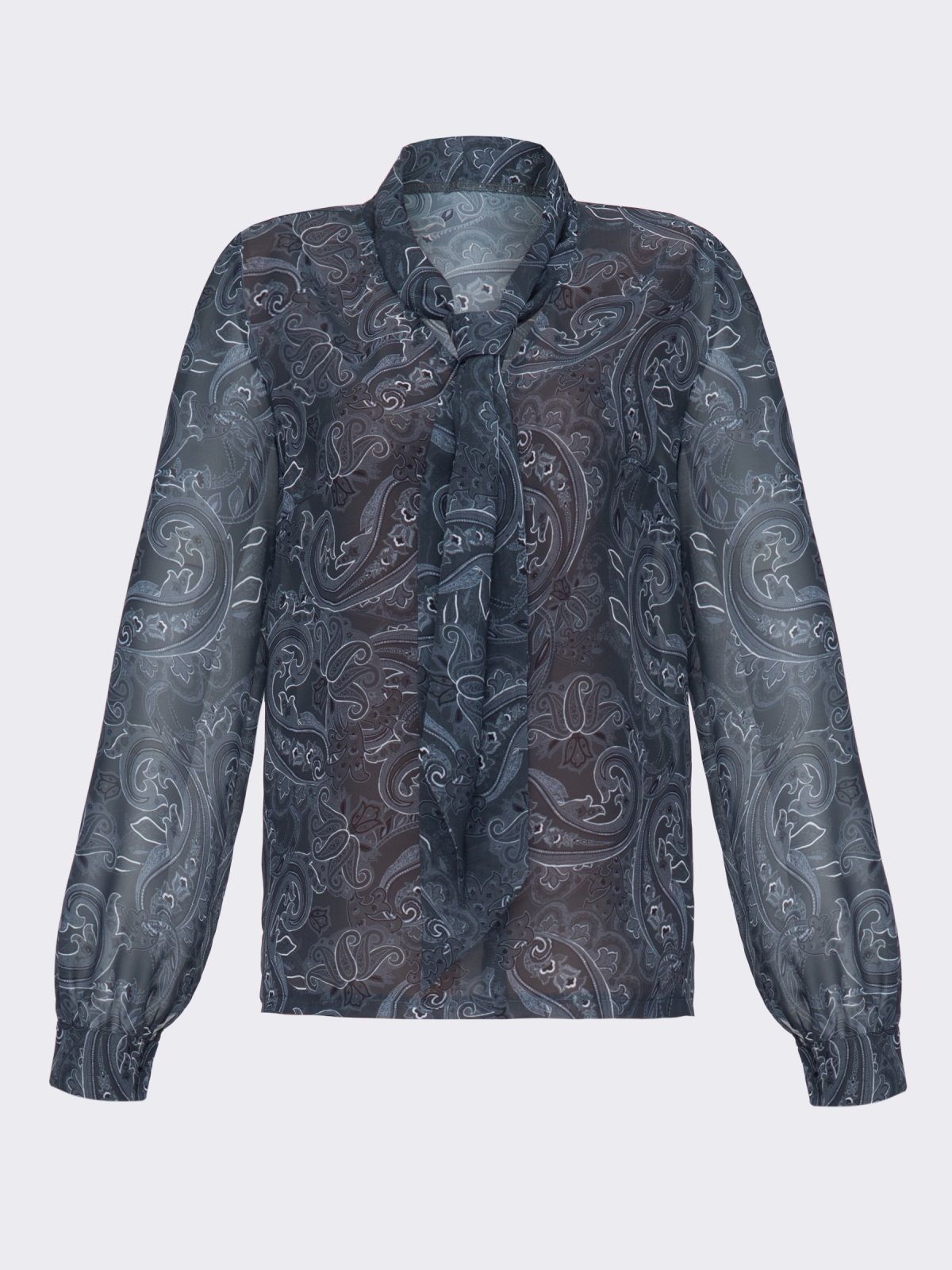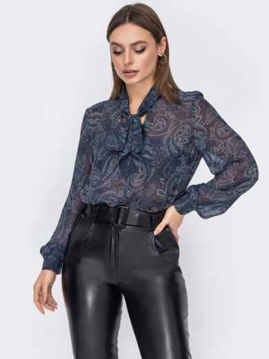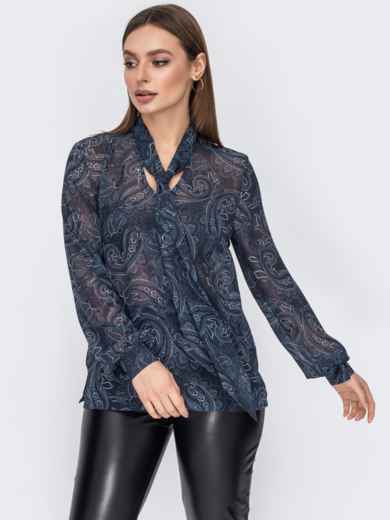 Шифонова блузка прямого крою в красивий східний принт з коміром-аскот.