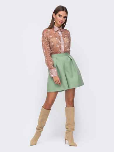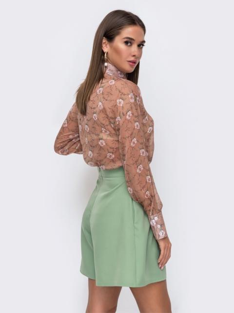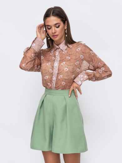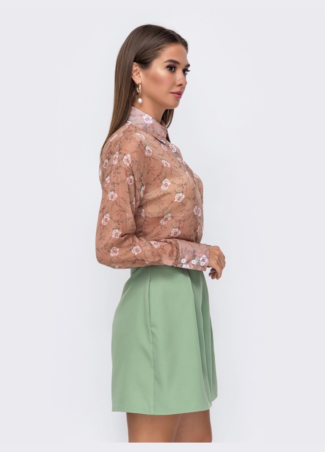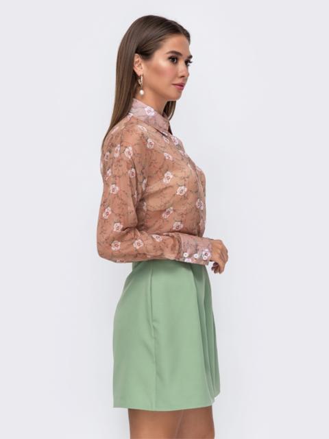 Принтована блуза прямого крою з шифону з супатною застібкою на ґудзики.