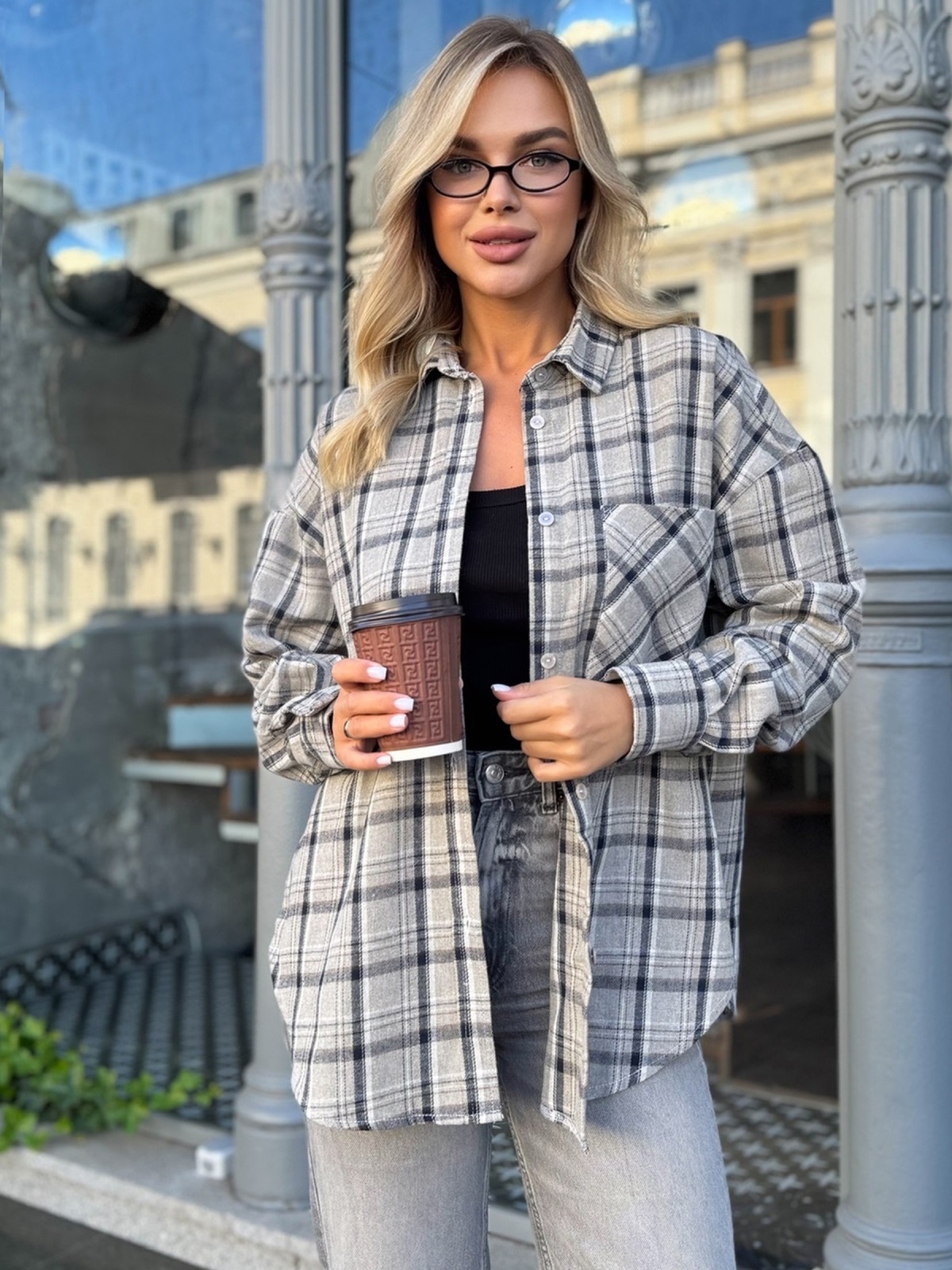 Сорочка з фланелі у клітинку. Вільний крій забезпечує свободу рухів. Класичний відкладний комір і застібка на ґудзики роблять сорочку зручною для повсякденного носіння та багатошарових образів. Накладна кишеня додає функціональності. Довгі рукави з манжетами на ґудзиках.
