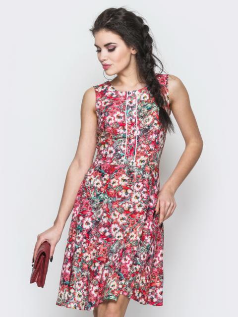 Принтована сукня з подовженою спинкою. Виріб із суцільнокроєними рукавами. Поділ доповнений воланом.