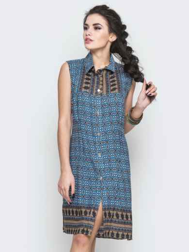 Сукня-сорочка із стильним принтом. Модель прямого крою з ґудзиками спереду на всю довжину. Оригінальне забарвлення притягує погляд.