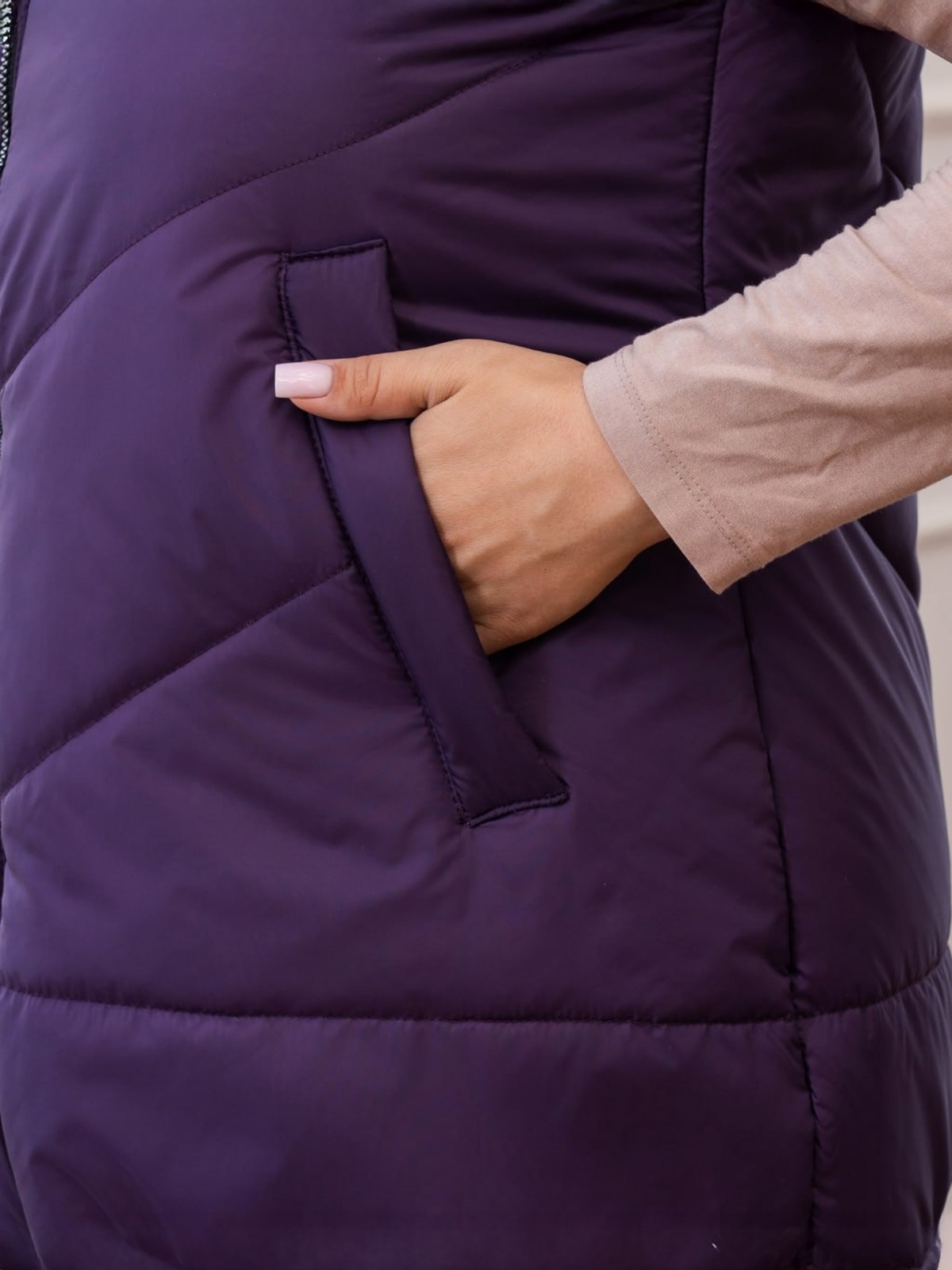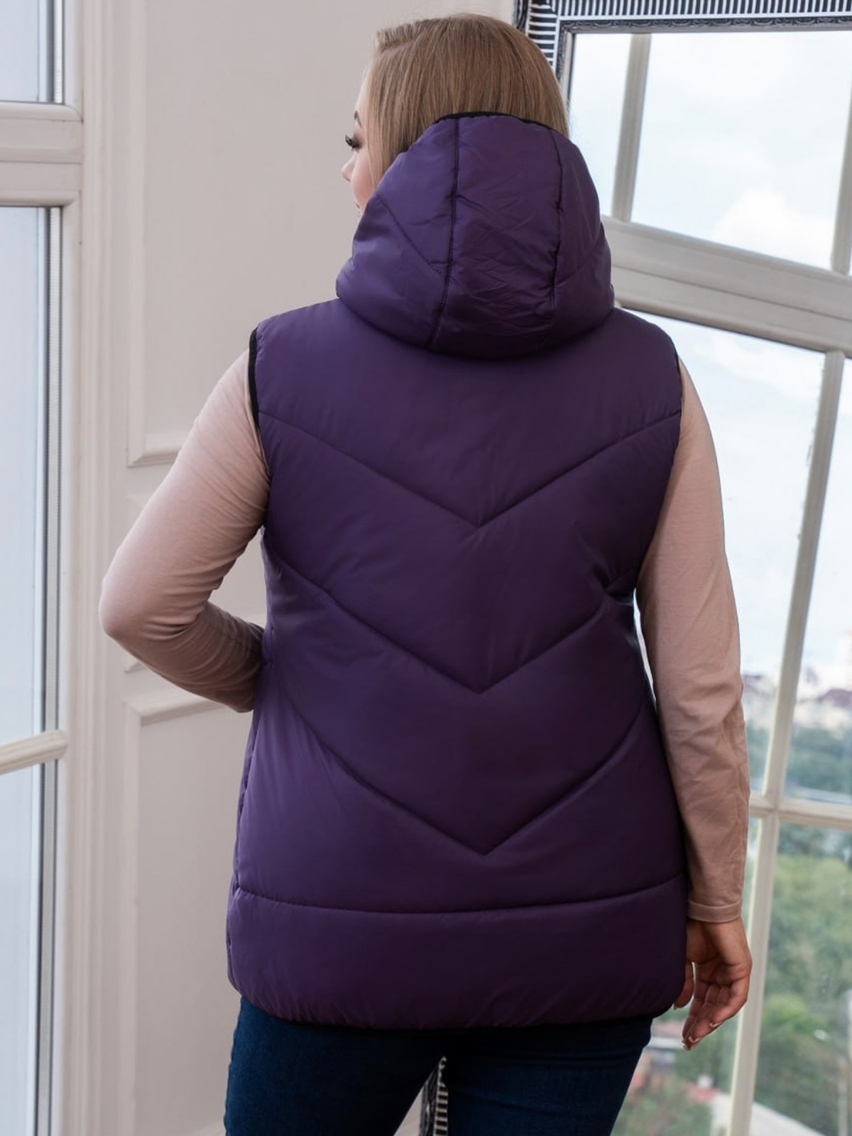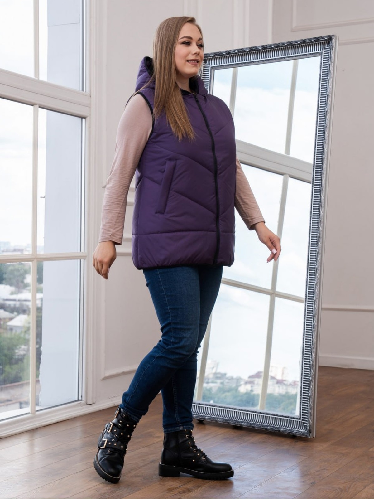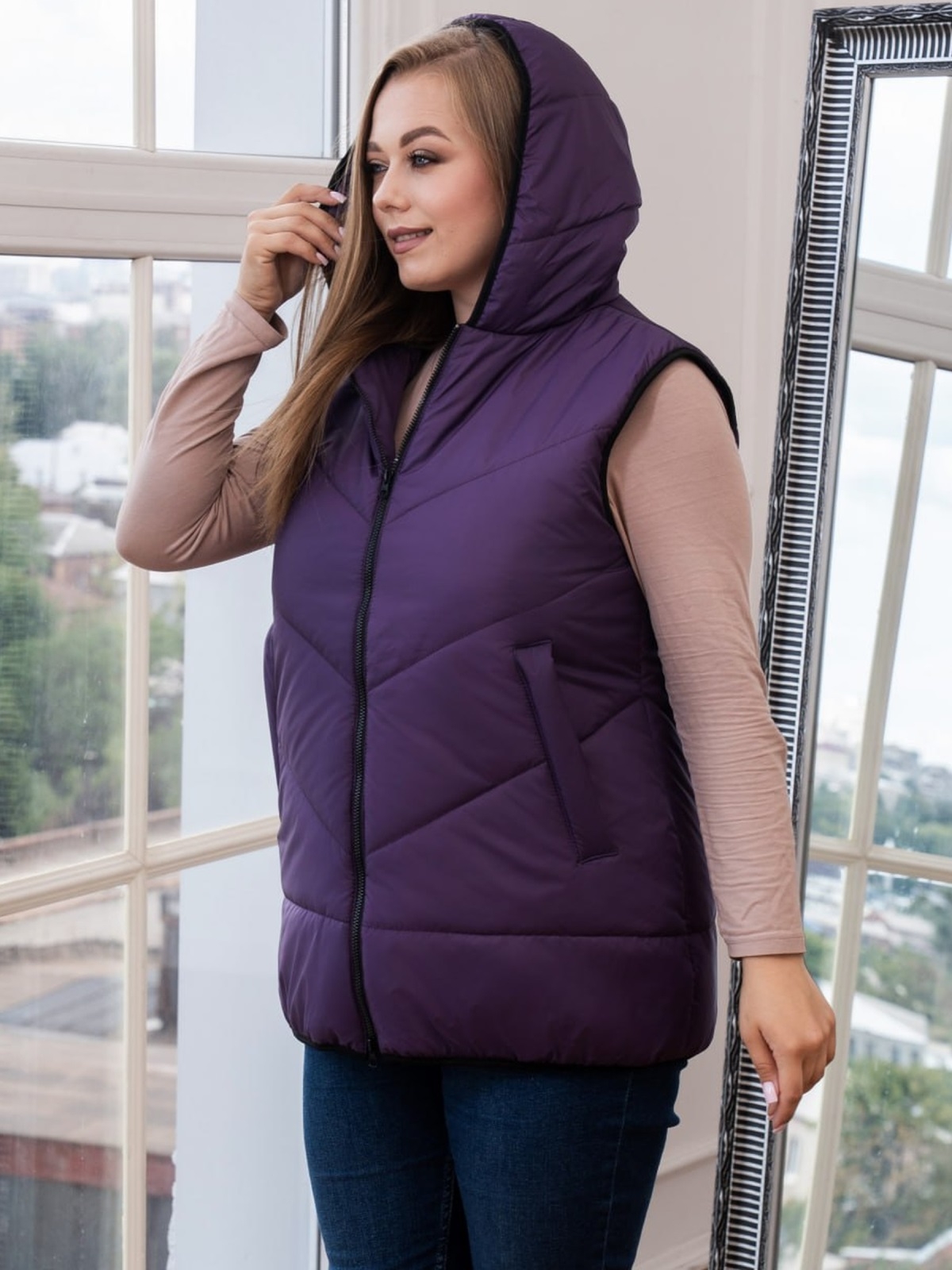 Подовжений жилет з вшитим капюшоном. Збоку розташовані місткі прорізні кишені. Пройми, капюшон і низ оброблені бейкою, що робить жилет міцнішим і довговічнішим. Застібка — двостороння блискавка. Модель має нейлонову підкладку, а як утеплювач використано силікон 120. Розрахований на температурний режим до 0°С.