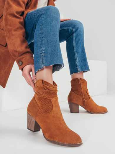 Коричневі ботильйони зі штучної замші. У зразку є легка вада, як на другому фото.