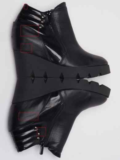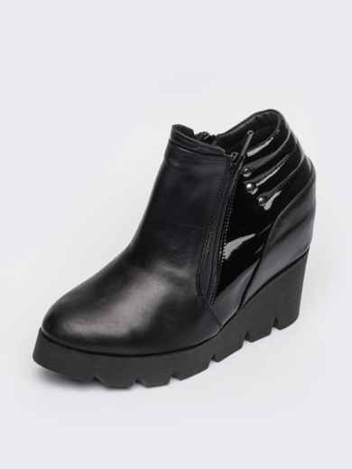 Чорні шкіряні ботильйони. Дефект – заломи на п'яті та потертості. Довжина устілки у 39 розмірі – 25 см; ширина устілки – 7,5 см; висота каблука – 6 см.