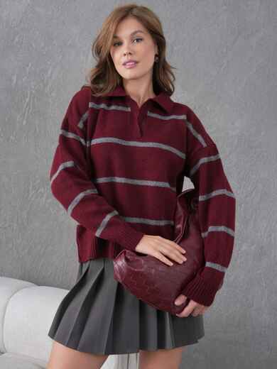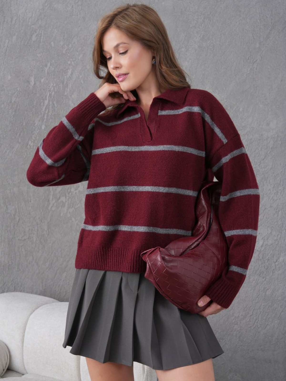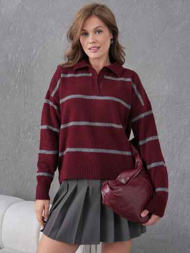 В'язаний джемпер з високоякісного турецького матеріалу. Модель з актуальним коміром-поло. Манжети і низ зв'язані гумкою для фіксації.