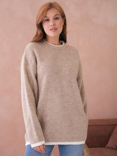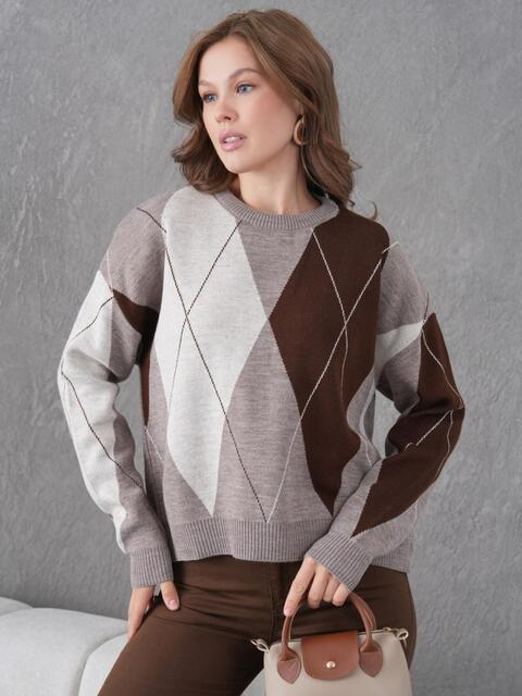 Гольф з фактурного в'язаного трикотажу з невисоким коміром.