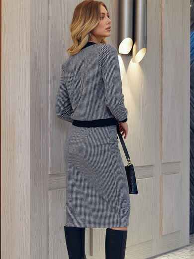 Стильний костюм у клітинку з кашеміру. Кофта на ґудзиках з V-подібним вирізом. Спідниця з розрізом спереду та декоративними ґудзиками. Застібається на блискавку збоку.