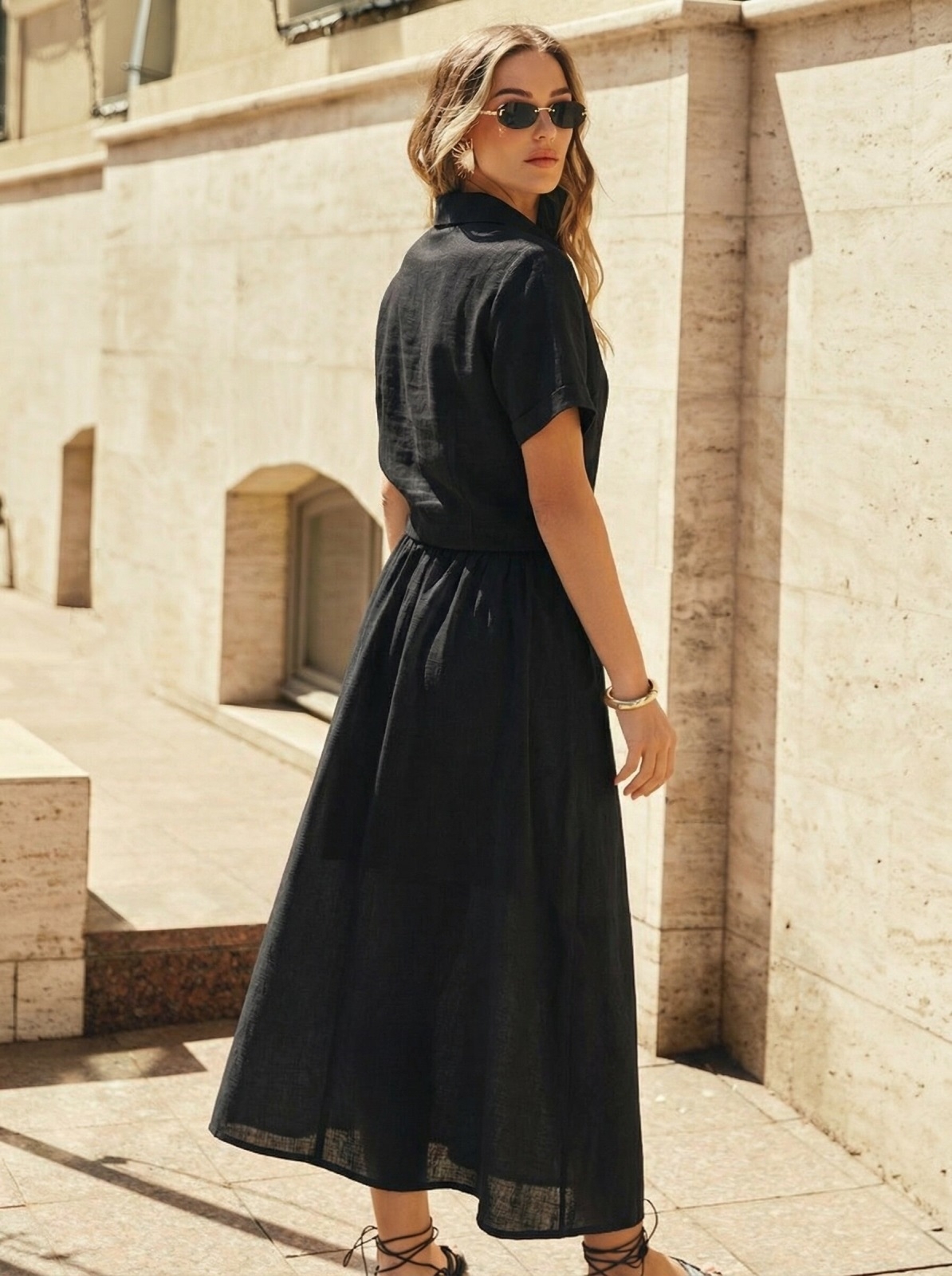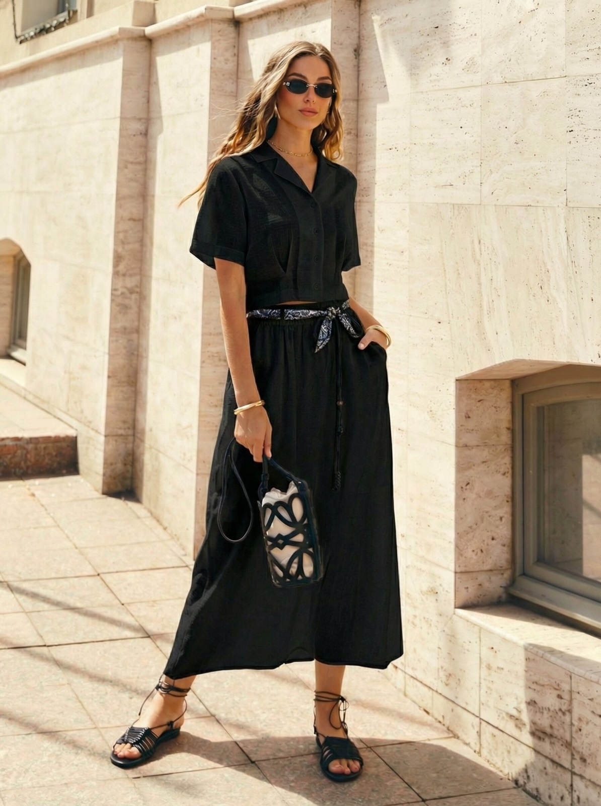 Підходить для офісу з неформальним стилем, прогулянок та подорожей. Пасує з човниками і босоніжками.