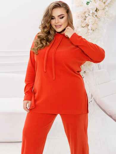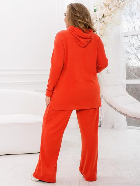 Брючний костюм-двійка на кожен день. Модель із ангори "рубчик". Верх у стилі оверсайз із капюшоном на зав'язках. Штани-палаццо з кишенями з боків. По талії розташована гумка.