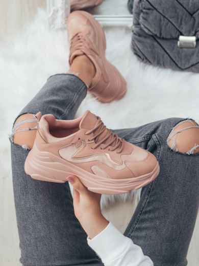Рожеві кросівки на масивній підошві з вадами, як на другому фото.