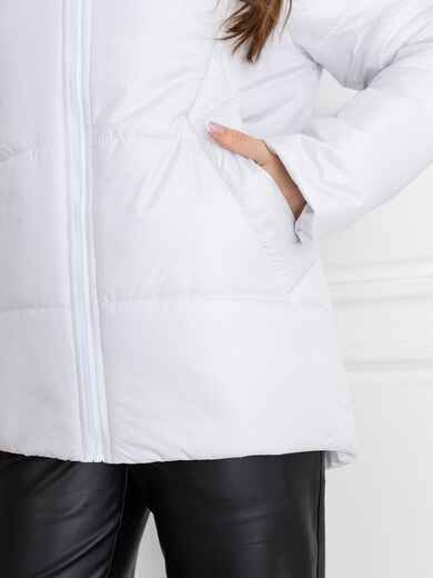 Демісезонна куртка зі злегка подовженою спинкою. Виріб з регульованим вшивним капюшоном і високим коміром. З боків розташовані прорізні кишені. Застібається на блискавку. Модель з водовідштовхувальної плащової тканини. Утеплювач – силікон 100. Розраховано на температурний режим до -5°С.