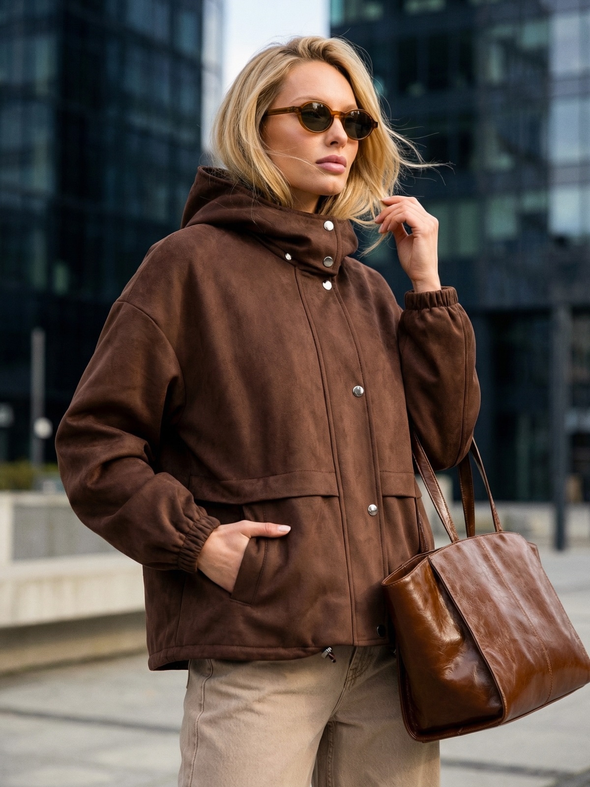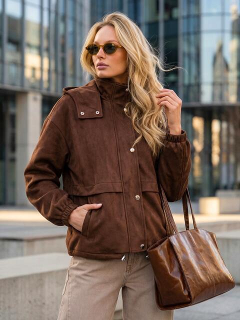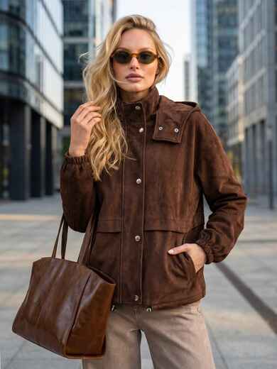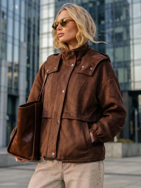 Вільна демісезонна куртка з високим коміром-стійкою, що переходить у знімний каптур. Манжети на гумці та куліска по низу допомагають утримувати тепло у вітряну погоду. Є бічні кишені. Застібається на блискавку під планкою на кнопках. Доповнена підкладкою .Розрахована на температурний режим до +5°С.