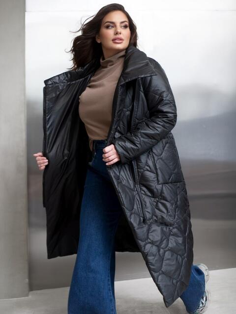 Практична зимова куртка з подовженою спинкою, з хутром на капюшоні і двома бубонами на кишені. З боків передбачені кишені на кнопках. Виріб застібається на блискавку і планку на кнопках. Капюшон вшитий, хутро знімний. Утеплювач силікон 300 мм. Виріб розраховане на температурний режим до -15 ° С.