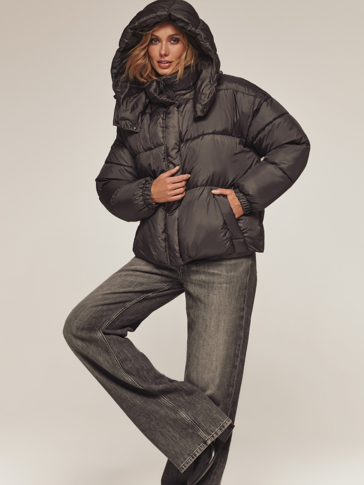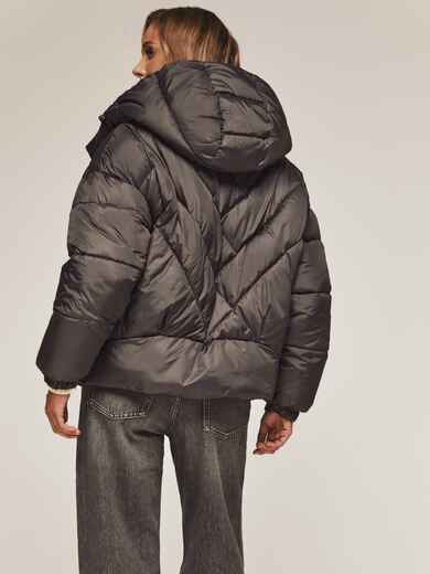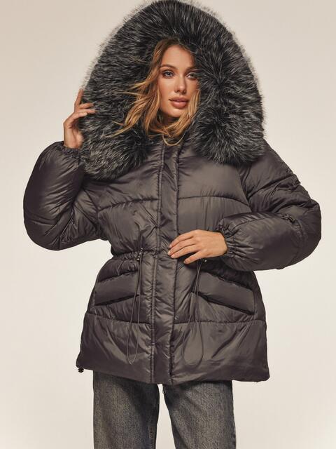 Стильна куртка з водовідштовхувальної тканини «Глорія». Знімний капюшон з фіксаторами і дві бічні кишені на кнопках додають практичності. Завдяки спущеному рукаву куртка має трендовий вільний силует. Манжети рукавів на гумці забезпечують щільне прилягання. Застібається на блискавку і кнопки, що забезпечує захист від вітру і холоду. Наповнювач — біопух, витримує температуру до -15°C.