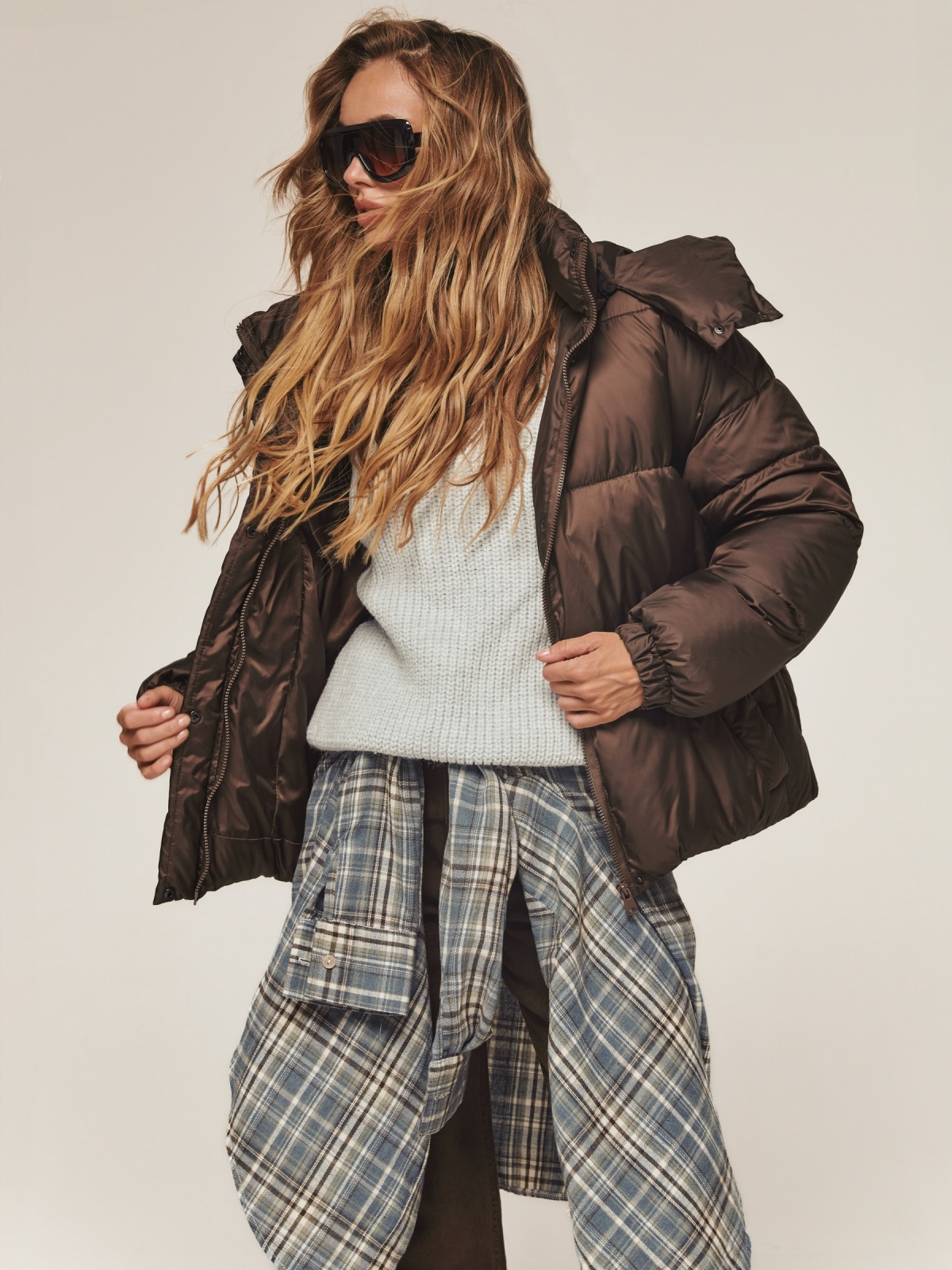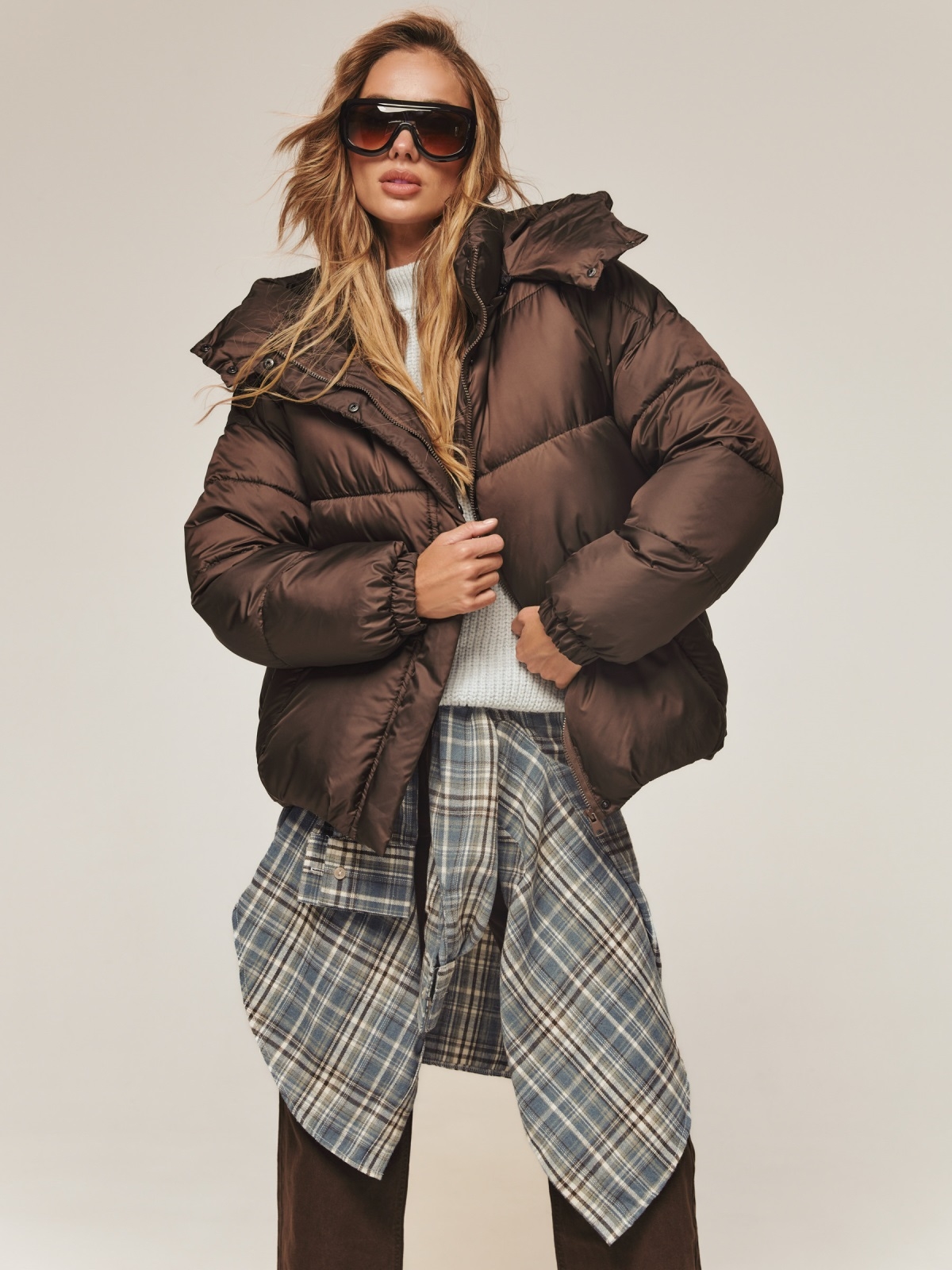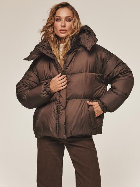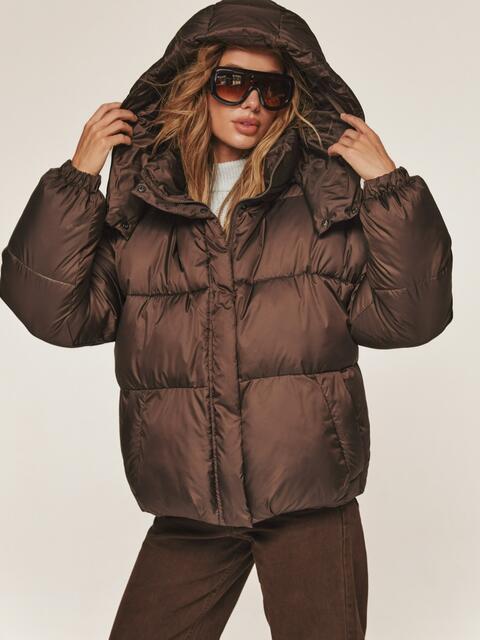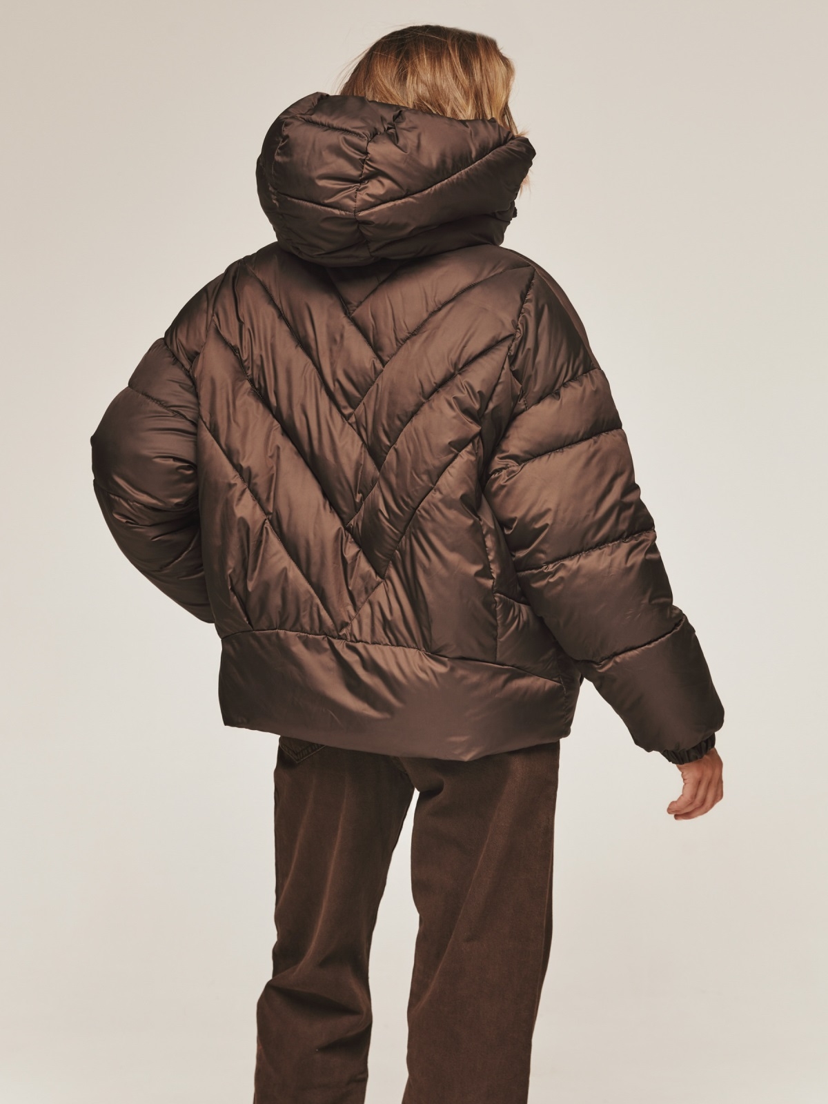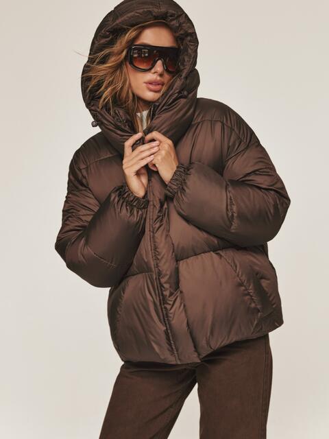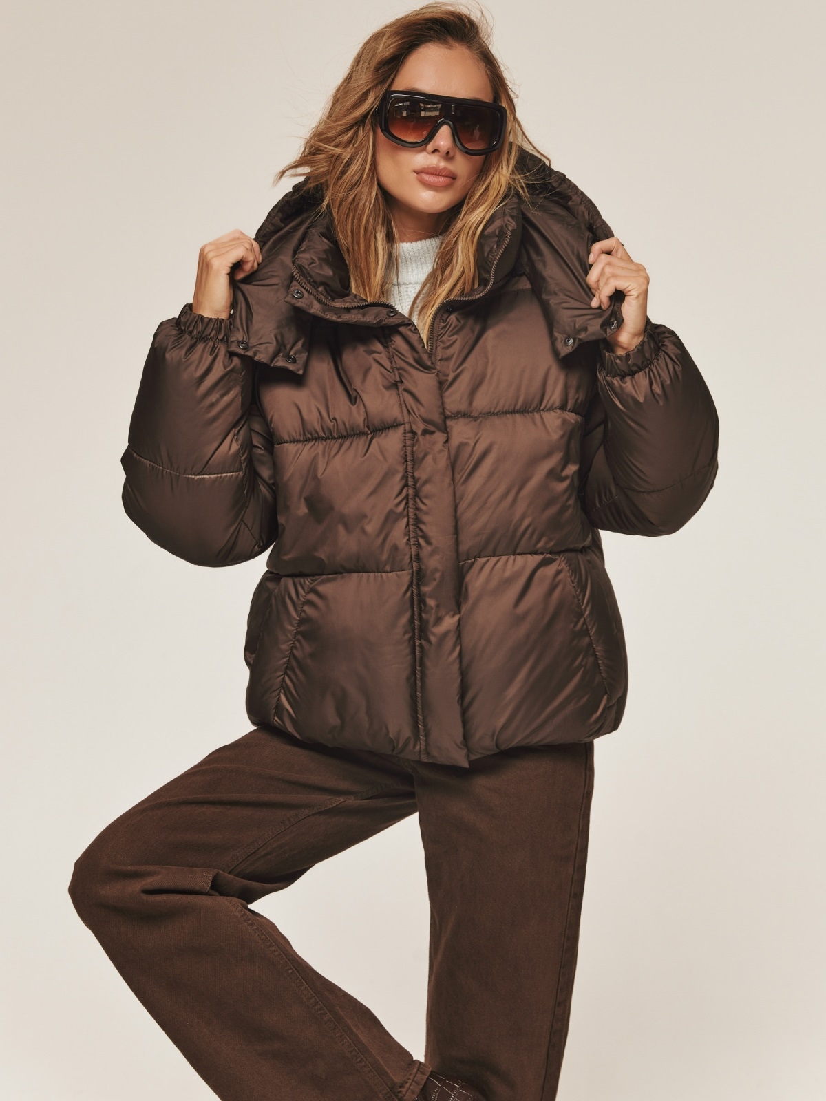 Стильна куртка з водовідштовхувальної тканини «Глорія». Знімний капюшон з фіксаторами і дві бічні кишені на кнопках додають практичності. Завдяки спущеному рукаву куртка має трендовий вільний силует. Манжети рукавів на гумці забезпечують щільне прилягання. Застібається на блискавку і кнопки, що забезпечує захист від вітру і холоду. Наповнювач — біопух, витримує температуру до -15°C.