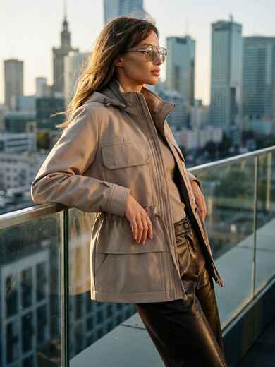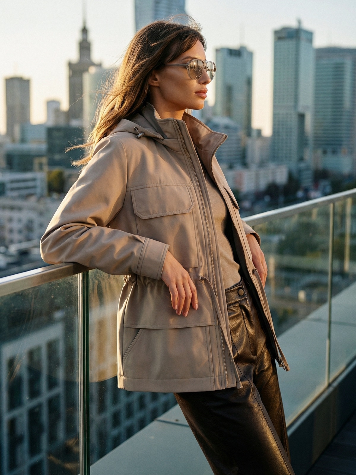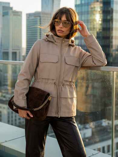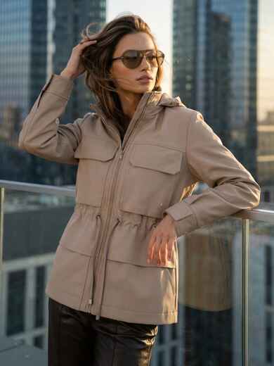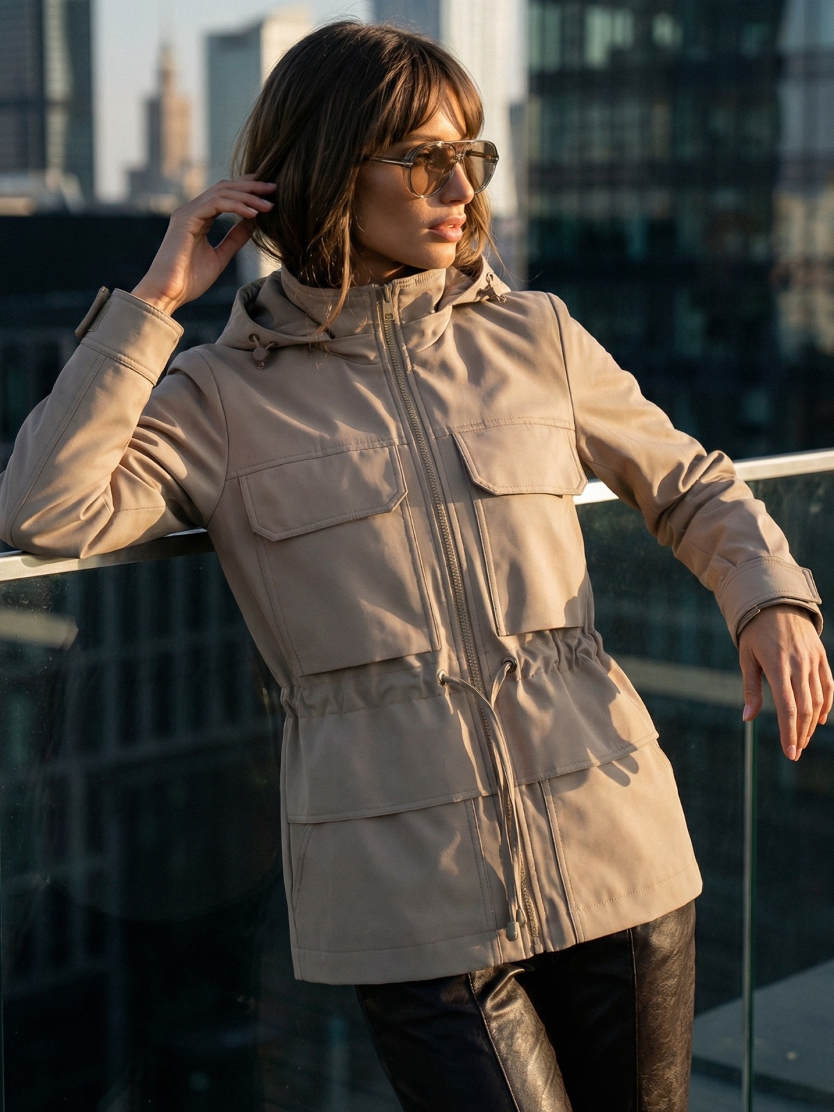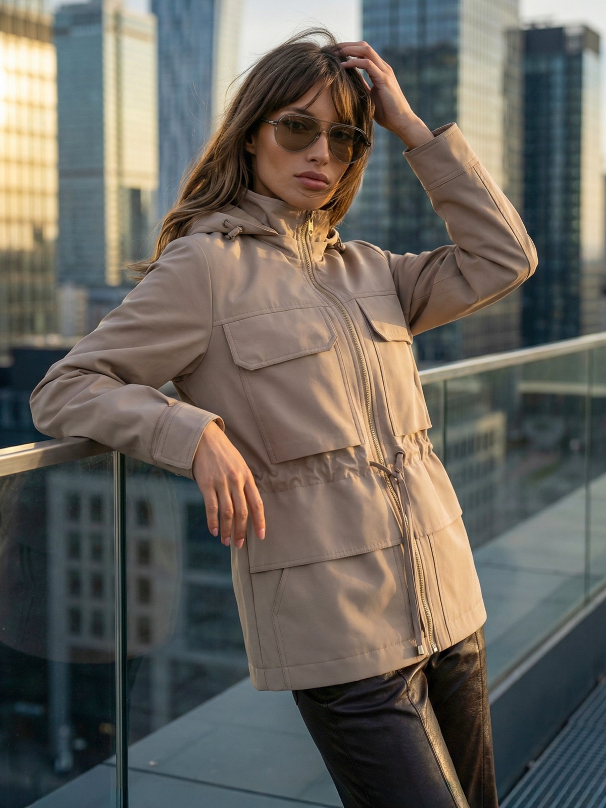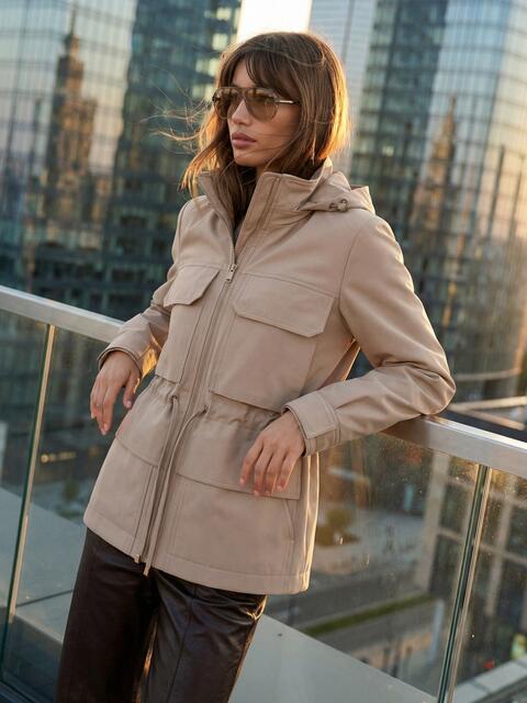 Парка для міжсезоння зі знімним каптуром. Модель має регульовану куліску на талії та накладні кишені на поличці. Високий комір і застібка-блискавка забезпечують захист від вітру. Доповнена підкладкою. Розрахована на температурний режим до +5°С.