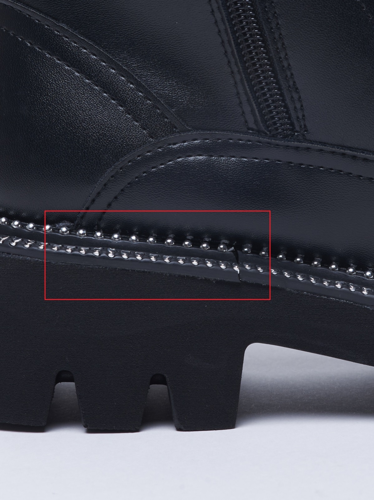Зимові черевики на масивній підошві. Дефект: клей на стику із підошвою, брак підошви. Довжина устілки – 22 см, ширина – 7 см.