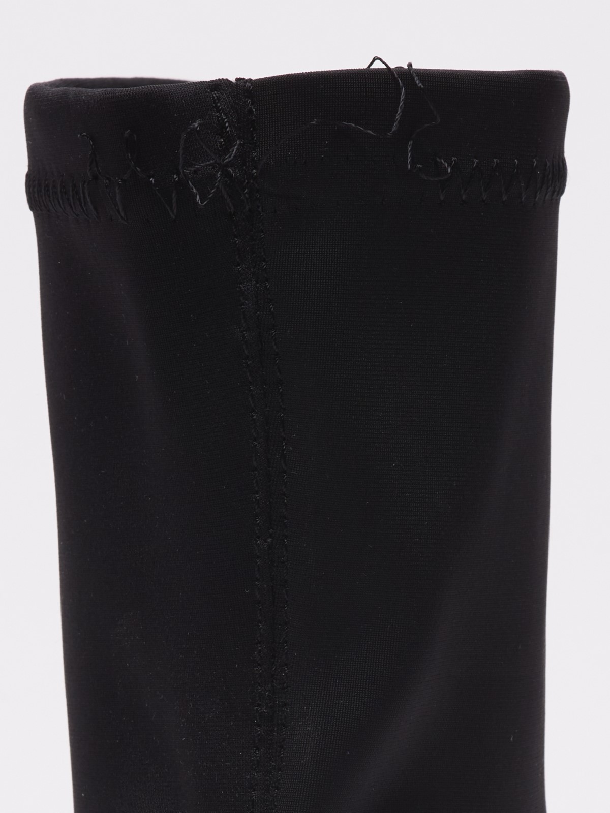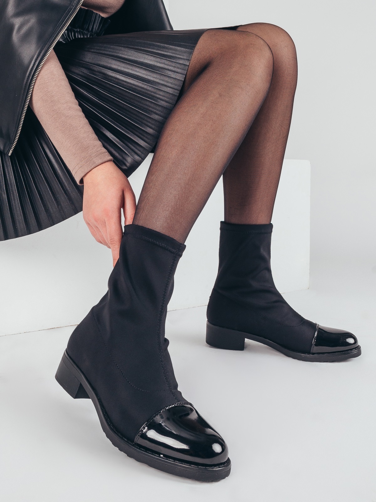 Чорні чоботи демісезонні з текстилю з лакованими носочками. Виріб із легким дефектом, як на другому фото.