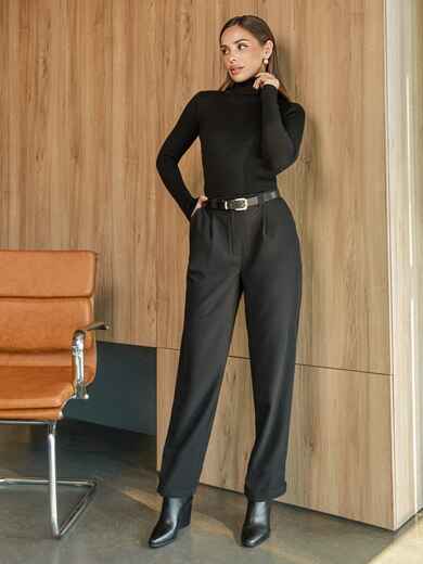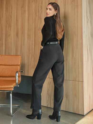 Повсякденні штани класичного крою. Модель з високою посадкою. Талія доповнена шльовками, що дає можливість стилізувати штани з різними ременями. Пояс не входить в комплект. Для зручності в носінні передбачені бічні кишені. Знизу розташована коротка блискавка. Застібаються на блискавку і ґудзик.