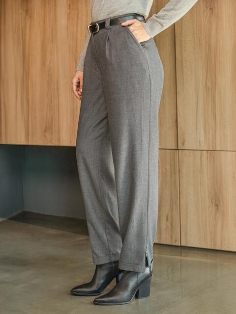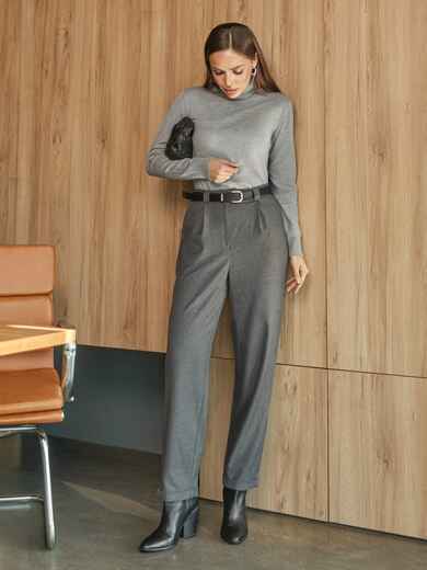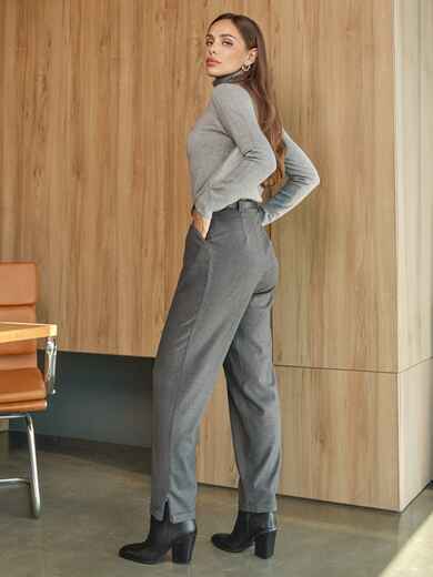 Повсякденні штани класичного крою. Модель з високою посадкою. Талія доповнена шльовками, що дає можливість стилізувати штани з різними ременями. Пояс не входить в комплект. Для зручності в носінні передбачені бічні кишені. Знизу розташована коротка блискавка. Застібаються на блискавку і ґудзик.