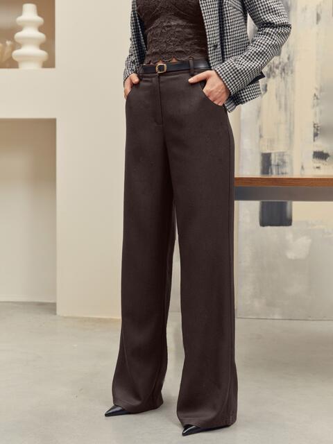 Штани в стилі кежуал із льону. Доповнені кишенями у бічних швах. Талія виконана резинкою з куліскою.