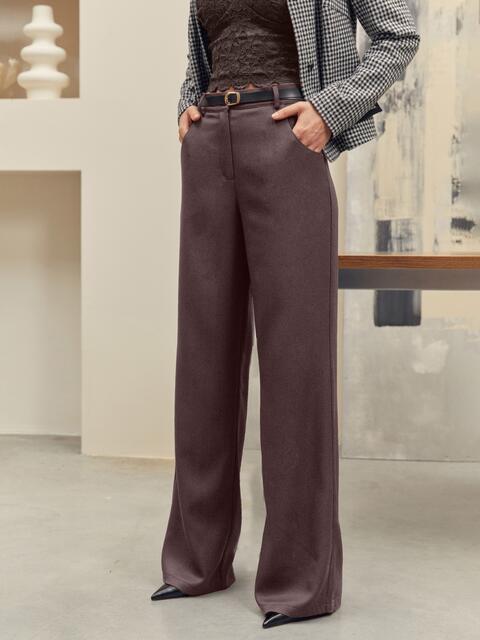 Штани прямого крою з турецької костюмної тканини зі стрілками. Модель середньої посадки. Попереду розташовані прорізні кишені. Позаду — пояс із гумкою для комфортної посадки. Із шльовками для ременю. Пояс у комплект не входить. Штани застібаються по центру на блискавку, прихований ґудзик та ґудзик. Прихована підшивка знизу додає охайного та елегантного вигляду.
