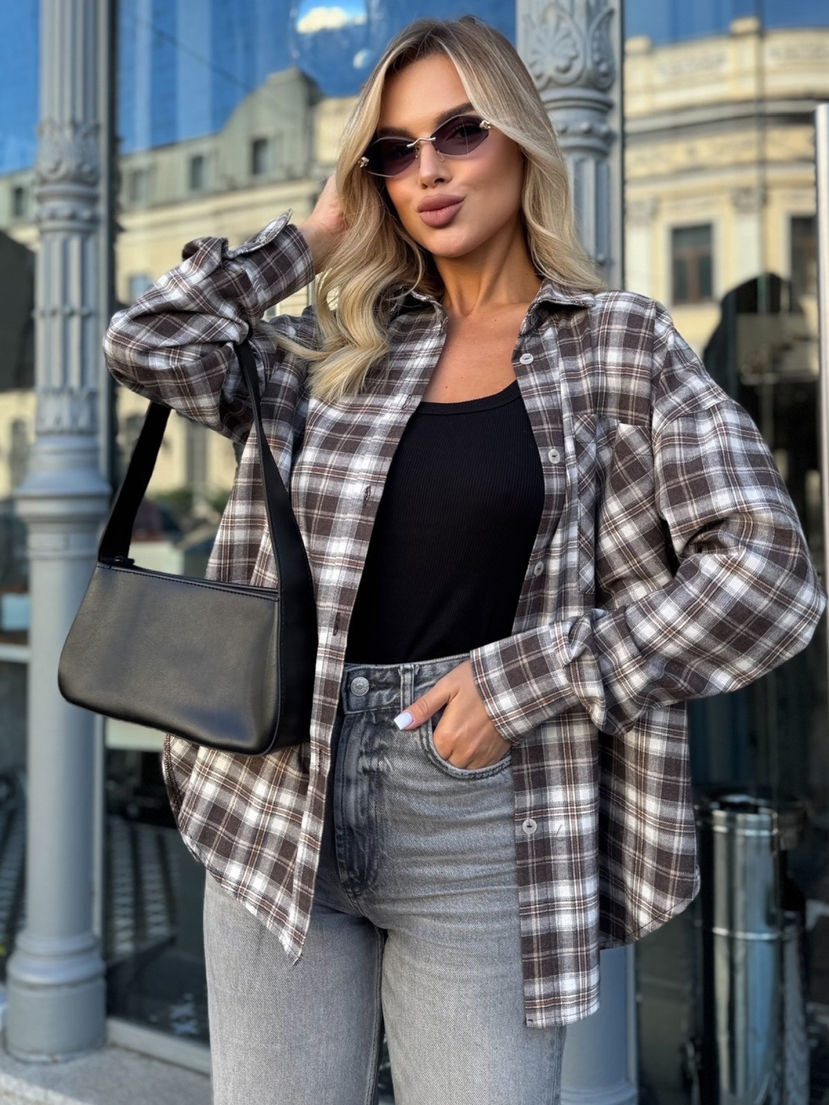 Сорочка з фланелі у клітинку. Вільний крій забезпечує свободу рухів. Класичний відкладний комір і застібка на ґудзики роблять сорочку зручною для повсякденного носіння та багатошарових образів. Накладна кишеня додає функціональності. Довгі рукави з манжетами на ґудзиках.