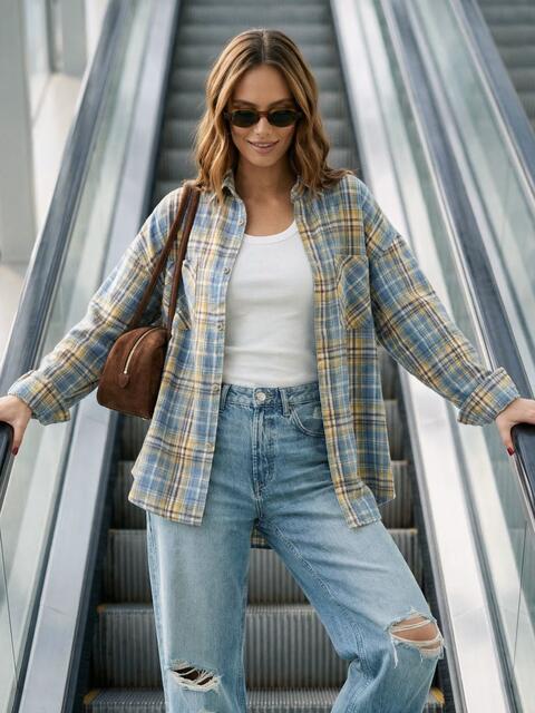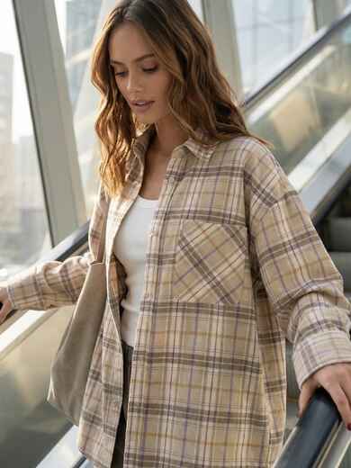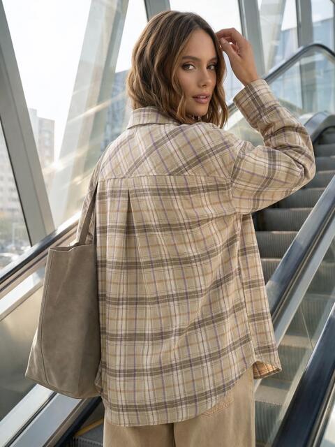 Картата сорочка з м'якої фланелевої тканини виглядає актуально та формує затишний образ у стилі кежуал. Поєднання відтінків надає моделі глибини та робить її більш виразною.