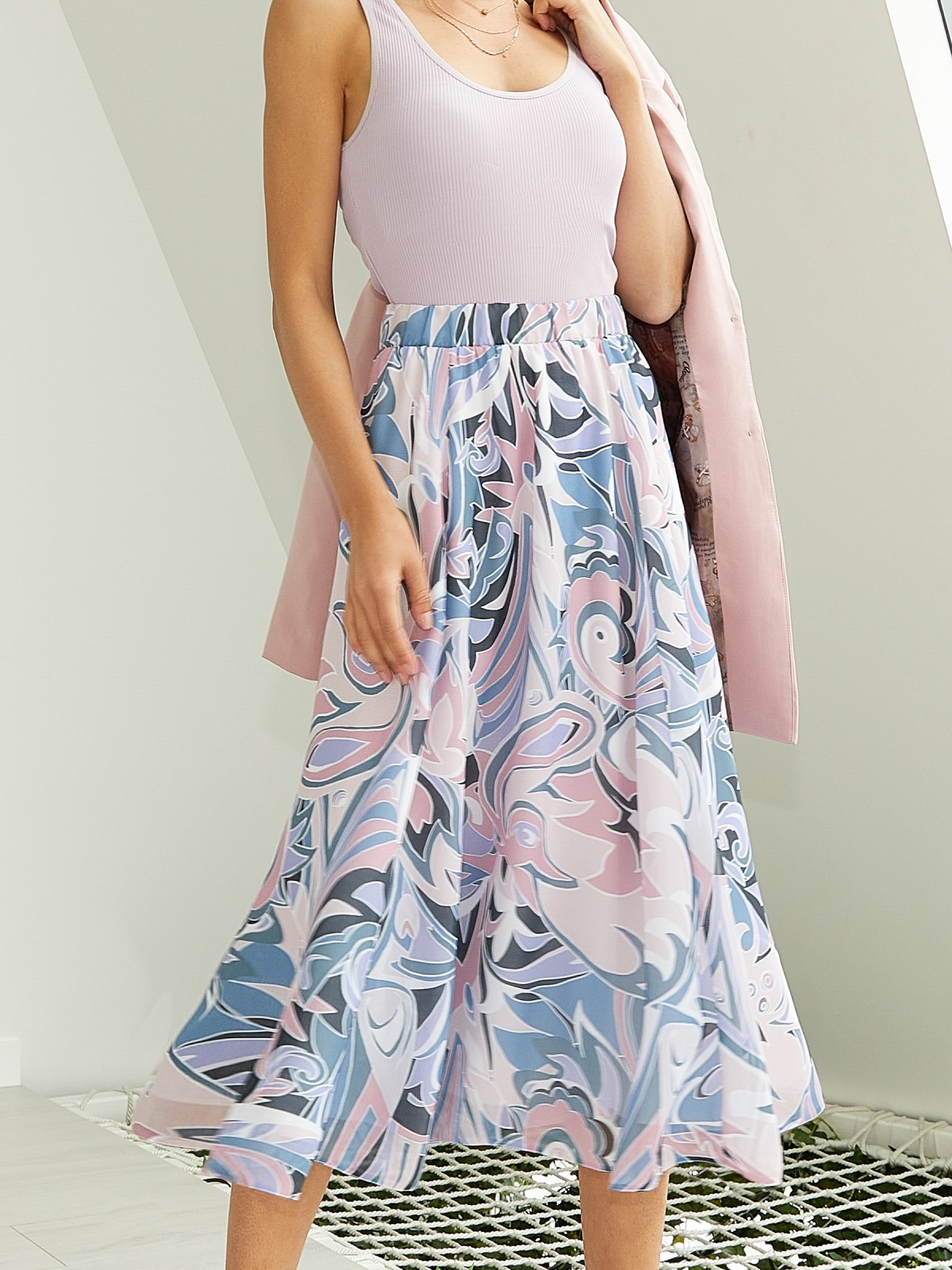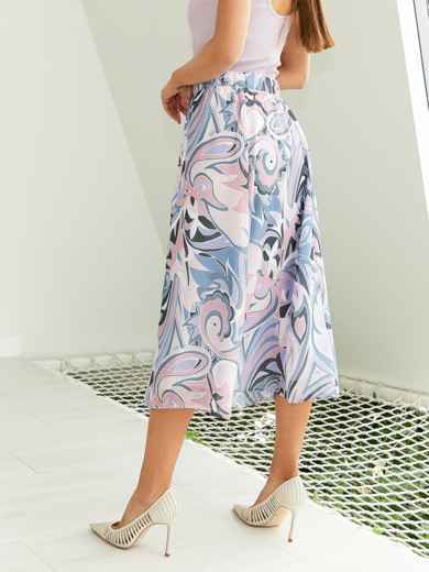 Шифонова спідниця-міді з принтом. Широка резинка вздовж талії. Виріб має бавовняну підкладку.
