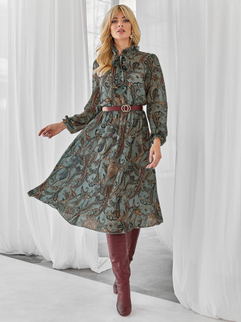 Отличное повседневное платье для теплого осеннего дня,расцветка ткани ближе к коричневой палитре,аккуратный пошив,в размер по сетке,талия на нужном месте для роста 170см.Спасибо команде МО за качественный продукт.