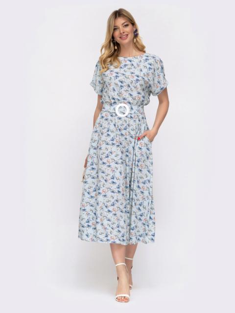 Повсякденна сукня із високоякісного турецького матеріалу з принтом. Модель відрізна вздовж талії з еластичною деталлю по талії. Для зручності в бічних швах передбачені кишені. Широкий пояс з основної тканини з масивною пряжкою в комплекті.