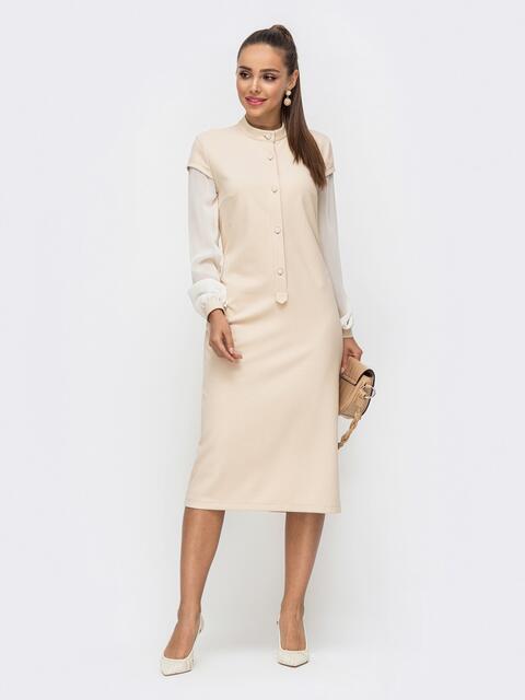 Сукня з замшевої тканини з розрізом ззаду. Довгі рукава з шифону надають моделі особливого шарму. Застібається спереду на ґудзики.