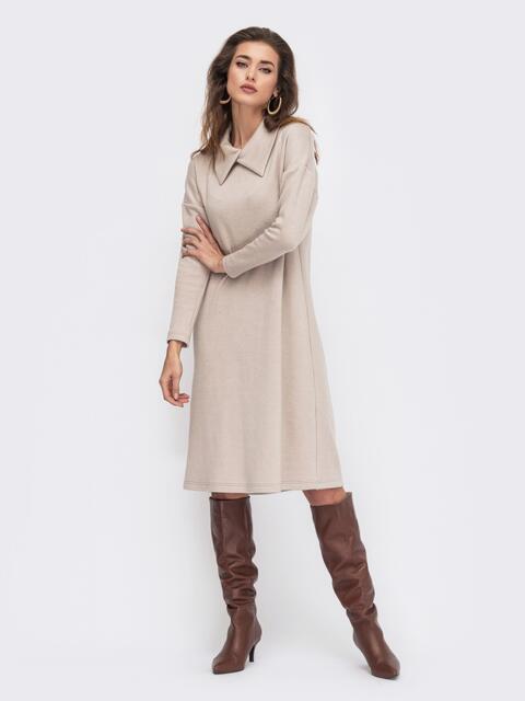 Тепла сукня А-силуету з ангори з відкладним коміром. Модель з довгим рукавом та спущеною лінією плечового шва.