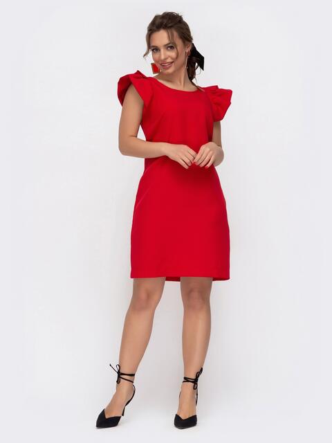 Силуетне плаття-міні з рукавом-крильце. Модель з глибоким вирізом на спинці і зав'язується на бант з шифону.