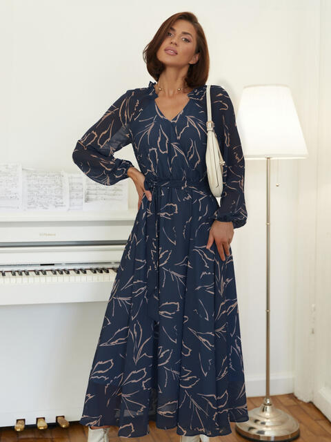 Плаття в горох зі спідницею-плісе. Довгий втачний рукав з ґудзиком на манжеті. Виріб з планкою спереду та коміром-стійкою. Вздовж талії передбачена еластична деталь. Комплектується пояслм з основної тканини з пряжкою.