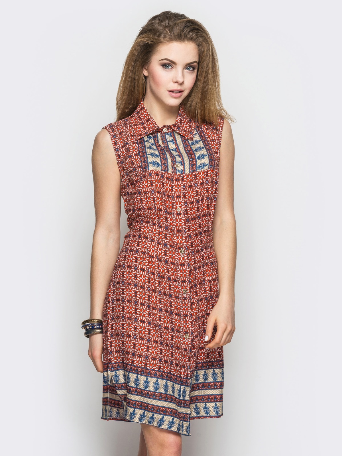 Сукня-сорочка із стильним принтом. Модель прямого крою з ґудзиками спереду на всю довжину. Оригінальне забарвлення притягує погляд.