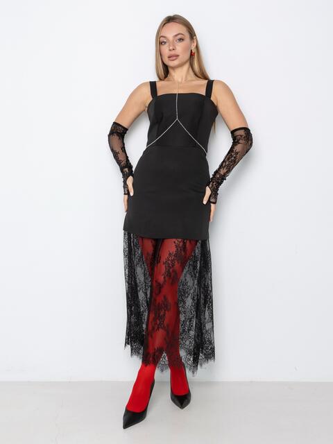 Коротка сукня з високоякісного турецького матеріалу з паєтками. Виріб на тонких бретелях, що регулюються. Доповнена підкладкою. Застібається на блискавку.