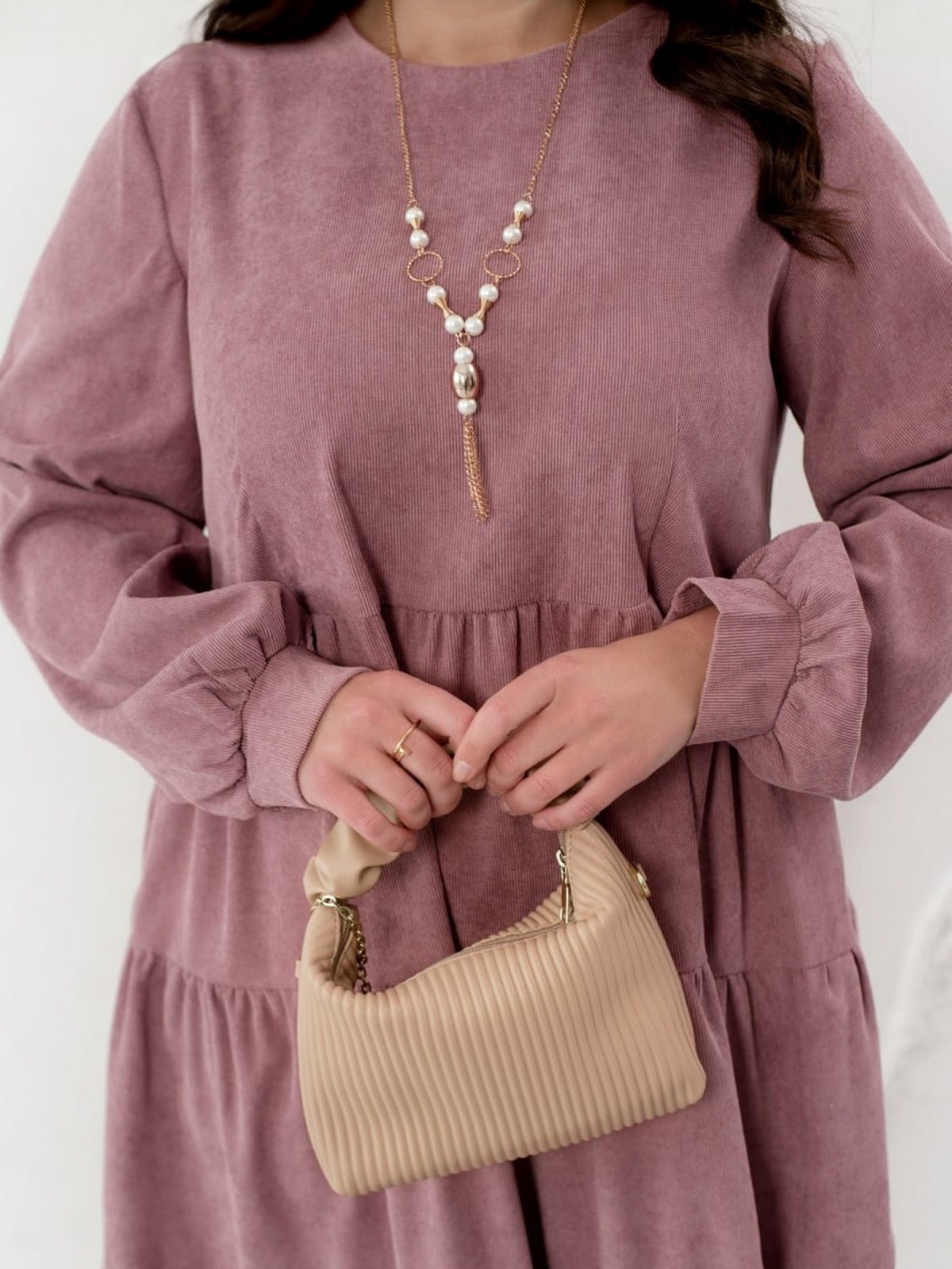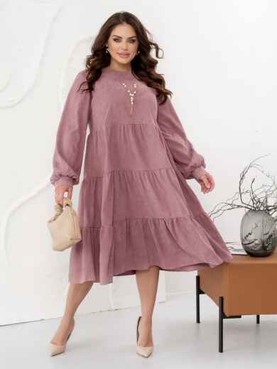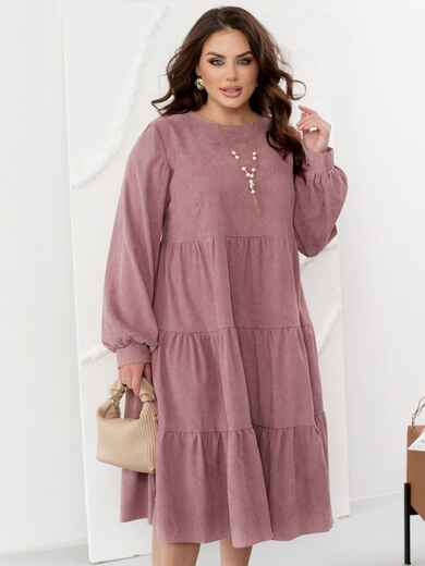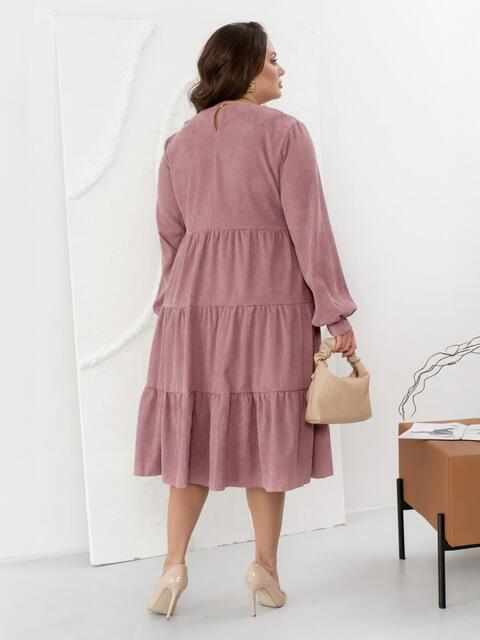 Вельветова сукня на кожен день. Модель А-силуету з широкими воланами (по центру нижнього волана розташований шов). Прикраса входить до комплекту. Застібається на ґудзик по спинці.