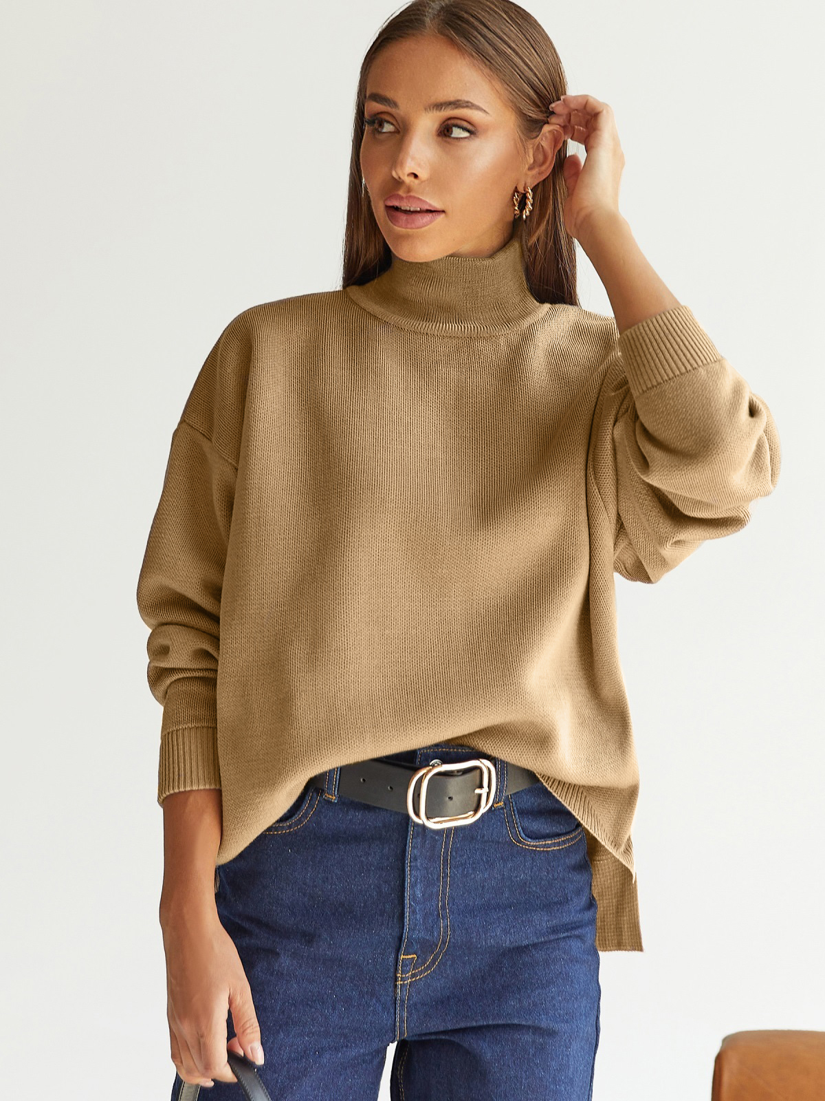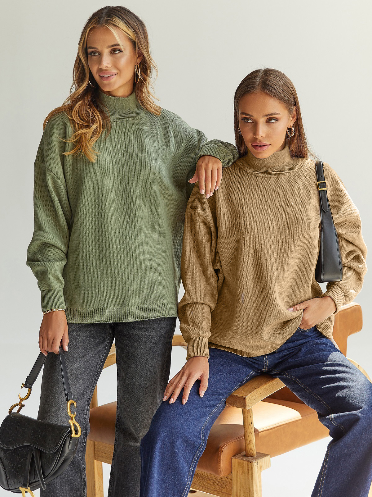 Мінімалістичний светр дрібної в'язки з подовженою спинкою. Модель вільного крою з високим коміром - ідеальний елемент базового гардероба.