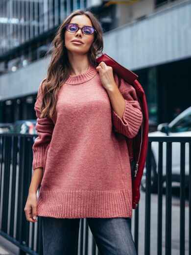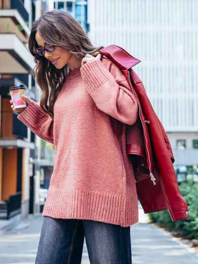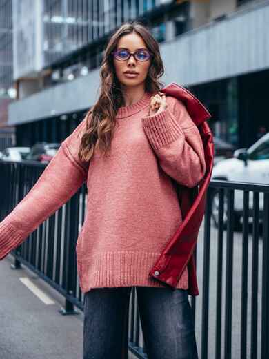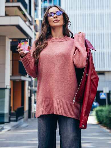 М’який светр ніжного рожево-пудрового відтінку із високоякісного турецького матеріалу. Виріб має класичну гумку по краю рукавів, внизу виробу та на горловині, що додає формі акуратності та зберігає тепло.
