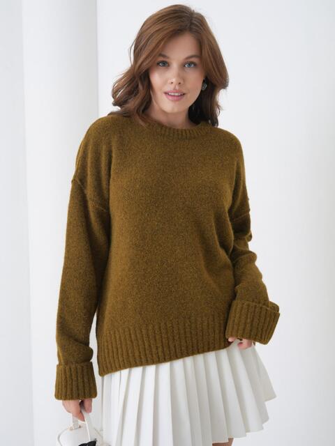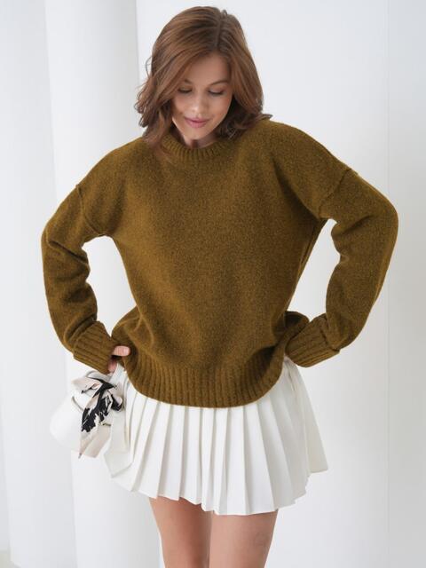 Подовжений светр із високоякісного турецького матеріалу. Модель з круглим вирізом та довгими рукавами.