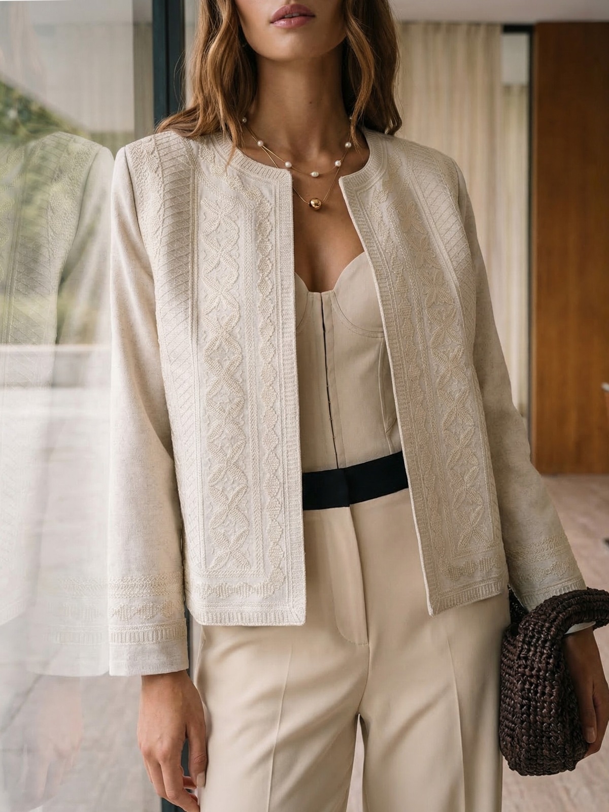 Лляний жакет з високоякісного турецького матеріалу з об'ємною вишивкою по бортах, рукавах і низу виробу - етнічний характер у сучасному прочитанні.